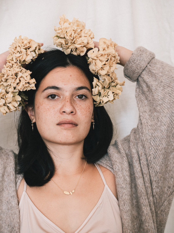 Puedes combinar este collar con los Pendientes Semilla o con los Pendientes Diatomea.