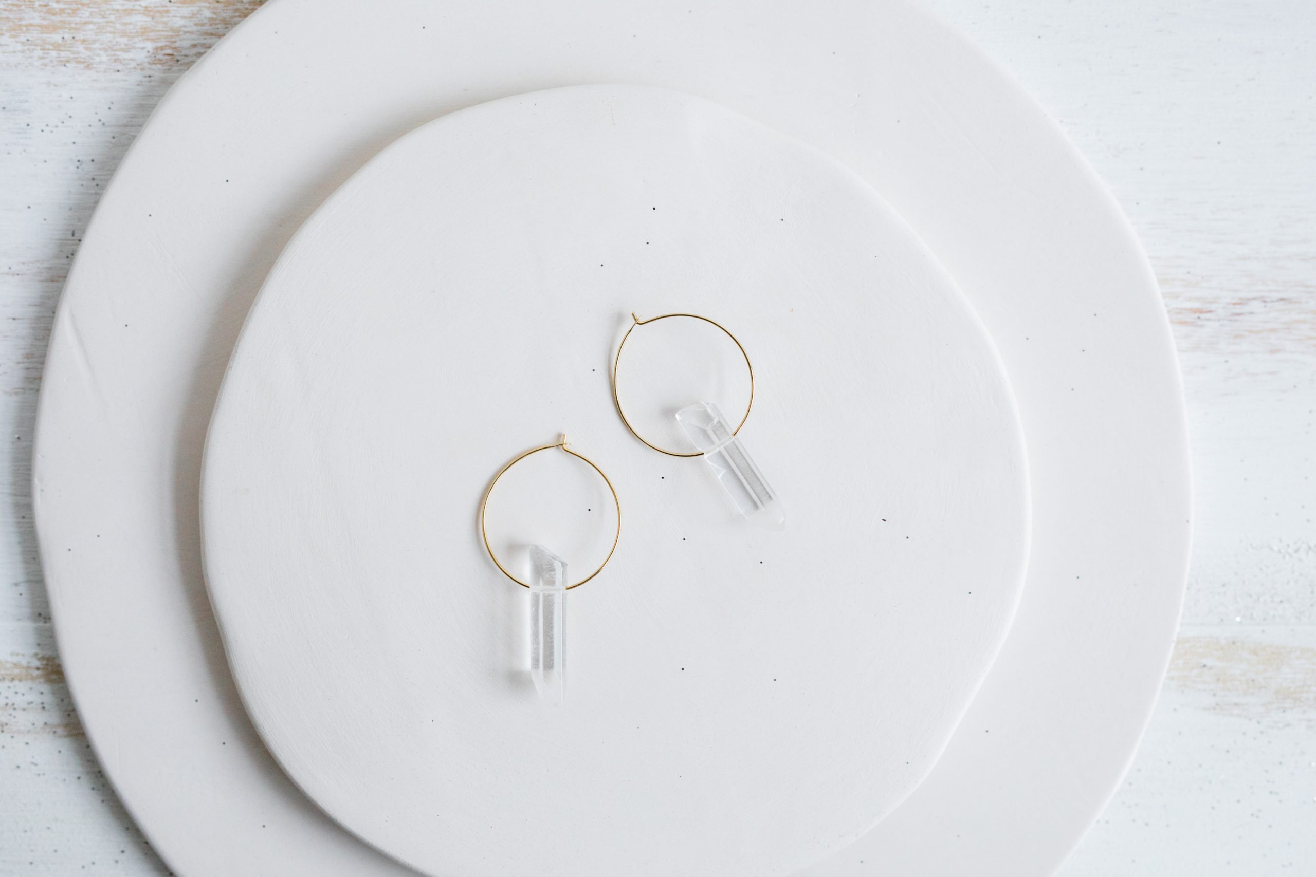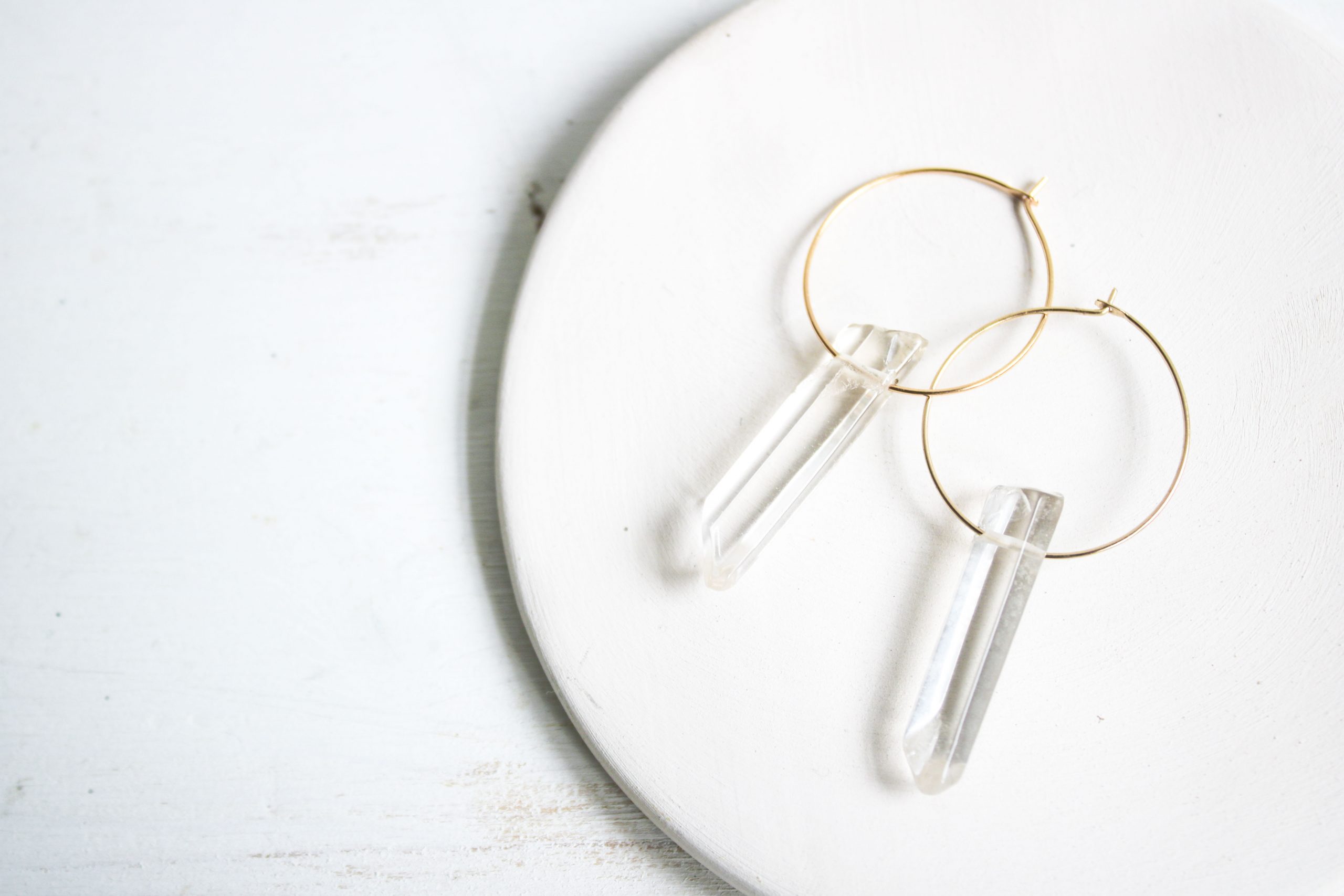 Para elaborar estos pendientes hemos empleado unas puntas de Cristal de Roca naturales en un diseño sencillo donde son las protagonistas.